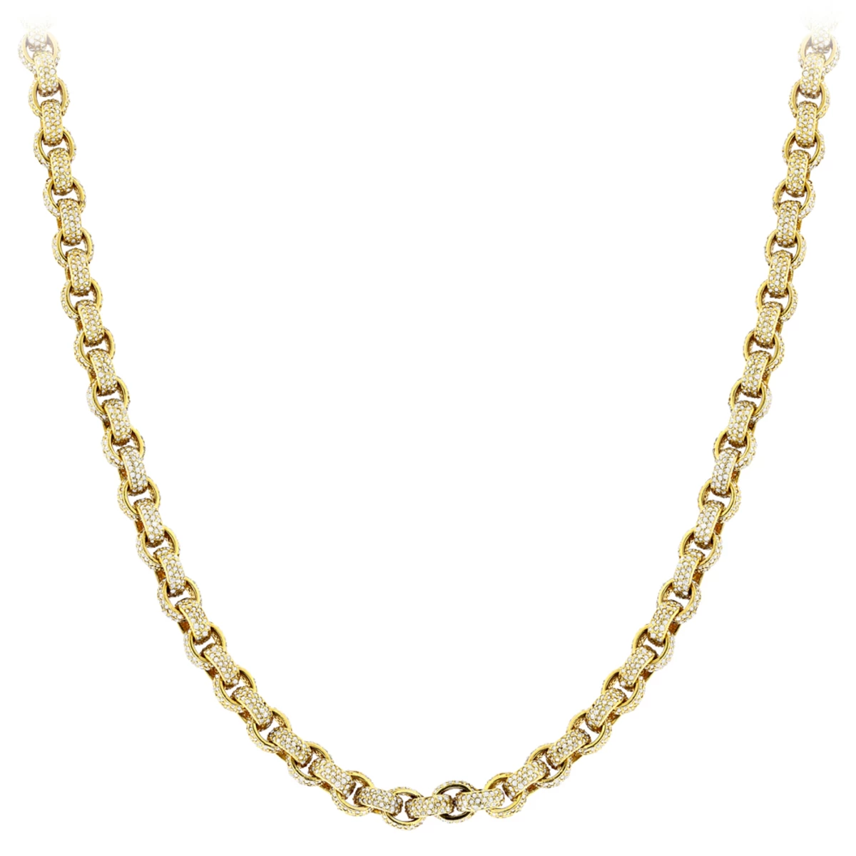 Hip Hop 14K Yellow Gold Cable Chain Eternity Diamond Necklace For Men 40.25ct