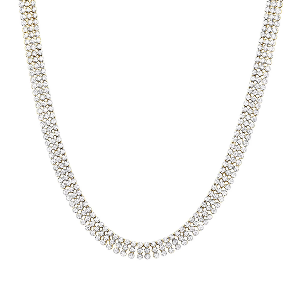 From our real hip hop jewelry collection This trendy Men’s Diamond Necklace by LUXURMAN is made in solid 14k gold with a modern twist on a classic one row diamond tennis chain, this unique chain features a 3 row diamond tennis necklace design featuring 30 carats of sparkling round diamonds each securely prong set in its own link in a 3-row gold frame. This men’s diamond chain is 10mm wide in a 3 row setting and can be customized in any length and even width, the chain weighs approximately 109 grams in default 32 inches long with 3 rows of diamonds, features secure open box clasp with safety and shines with luxury. This dazzling 3-row diamond chain is available in 14K white, yellow and rose gold.
