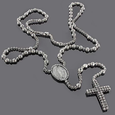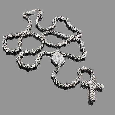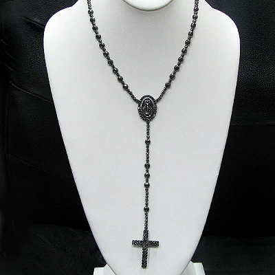 Hip Hop Black Diamond Rosary Chain Necklace