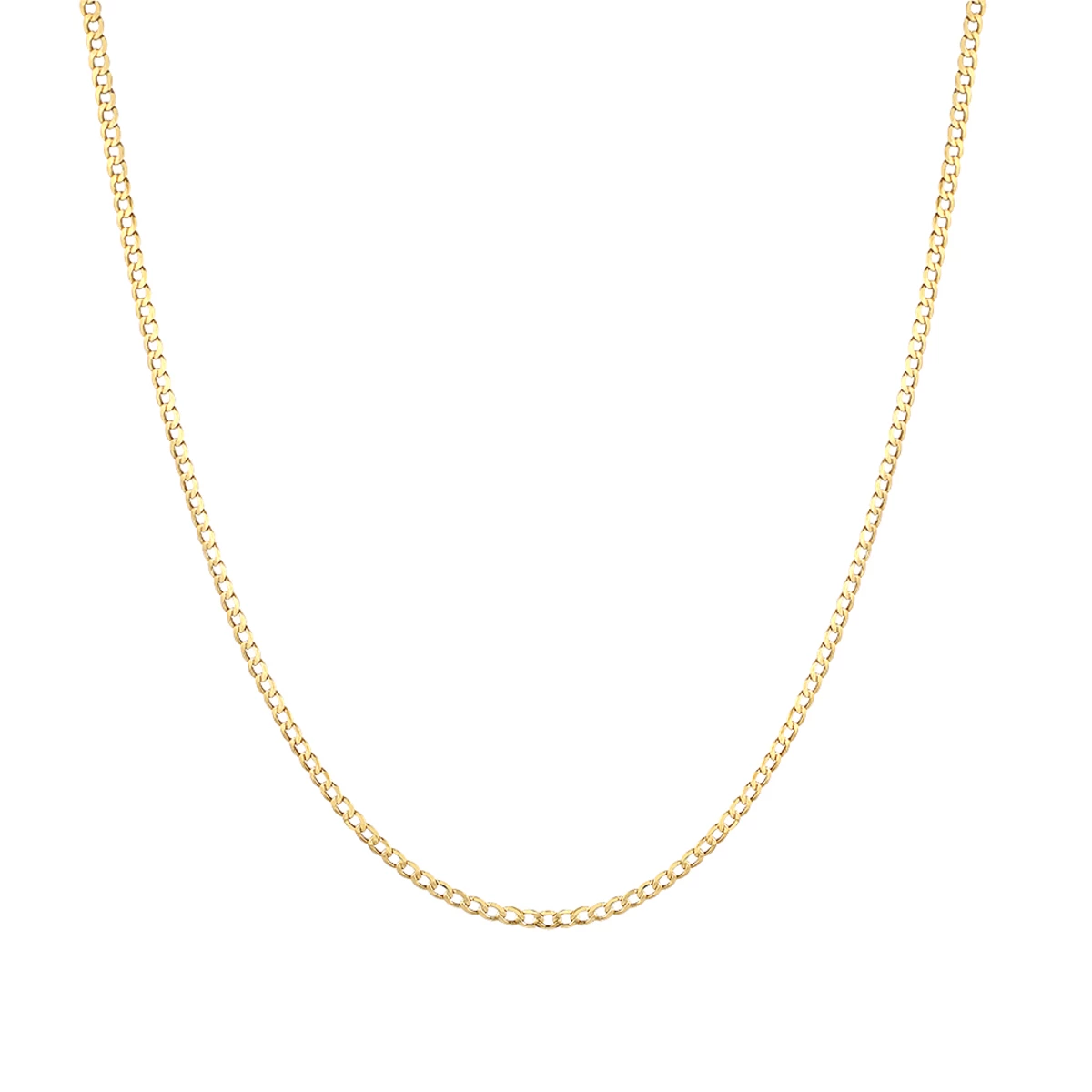 Affordable Hollow Chains: This 10k Gold Curb Chain For Men & Women is 4.5mm wide, each Curb necklace is quality made and is available at up to 50% off the retail price. Approximate weights for each length: 18in.-4.7gr., 20in.-5.3gr., 22in.-5.8gr., 24in.-6.3gr.