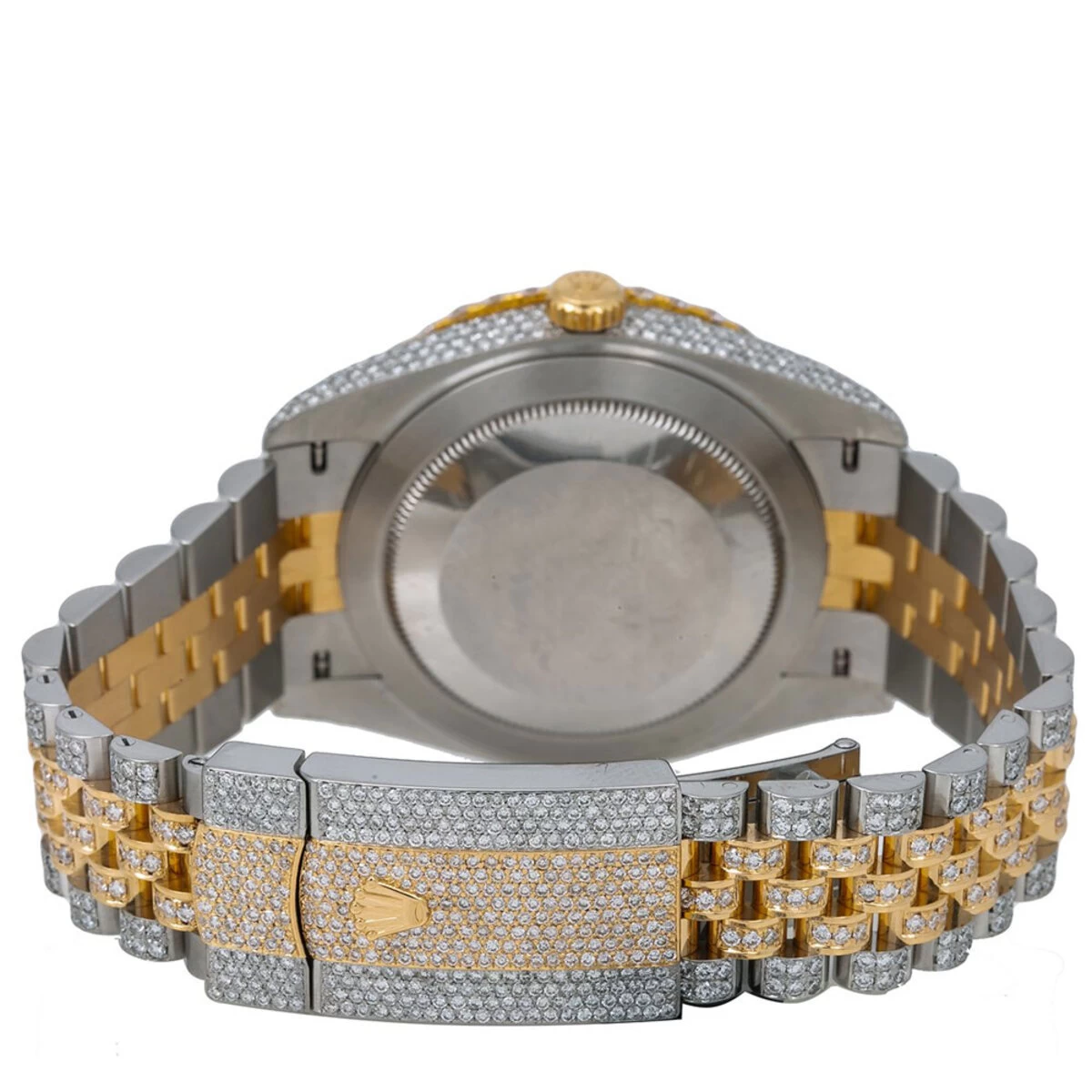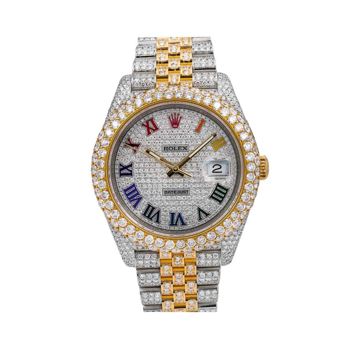 Iced Out Rolex Diamond Watch For Men 41mm Two Tone Datejust Color Dial 17.75ct