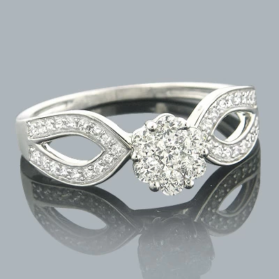 Ladies 14K White Gold Cluster Diamond Ring 0.59ct