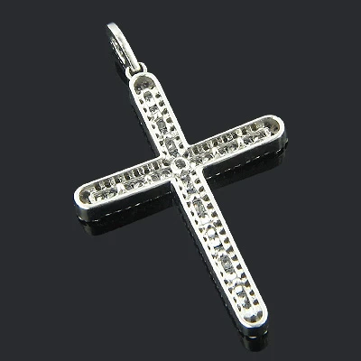 Ladies 14K White Gold Designer Diamond Cross Pendant 1.41ct
