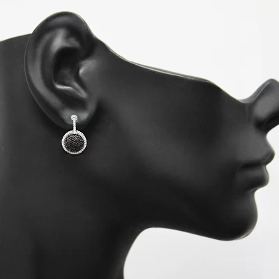 Ladies Circle Earrings With Black And White Diamonds 0.60ct 14K White Gold