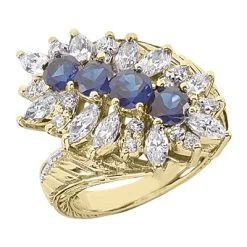 Designer Gemstone Jewelry: This Ladies Diamond and Sapphire Ring in 14K gold features 1.90 carats of diamonds and 1.60 carats of blue sapphires. This diamond ladies ring is available in Platinum, 18k or 14k yellow, rose, white gold, various sizes, and can be customized with any color and quality diamonds. Please note: it will take us 3-5 business days to make this ring for you so please plan accordingly. Please contact us at 212-398-3123 if your size or desired option is not listed.
