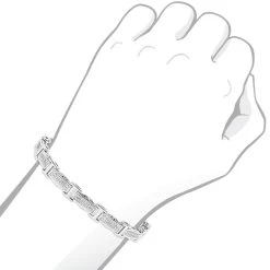 This Ladies Diamond Bracelet in Sterling Silver weighs approximately 12 grams and showcases 0.22 carats of genuine diamonds. Featuring a classic design and a luxurious rhodium plating for extra shine, this women’s diamond bracelet is an affordable alternative to gold jewelry.