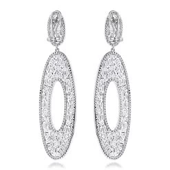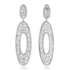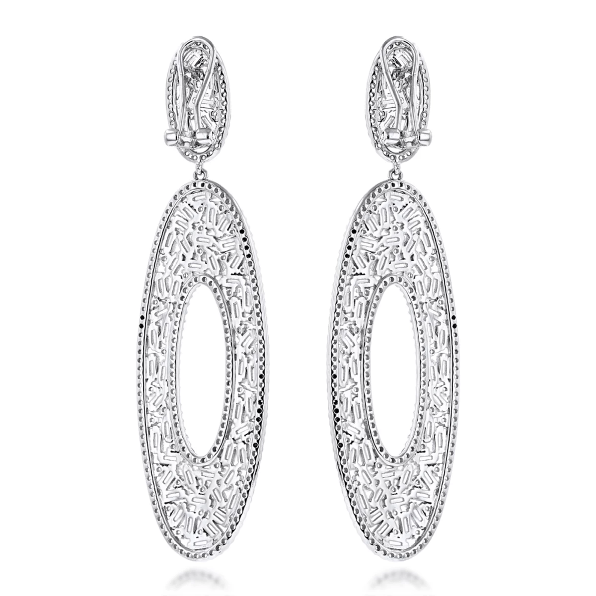 LUXURMAN Oval Designer Diamond Drop Earrings For Women 14K White Gold 9ct