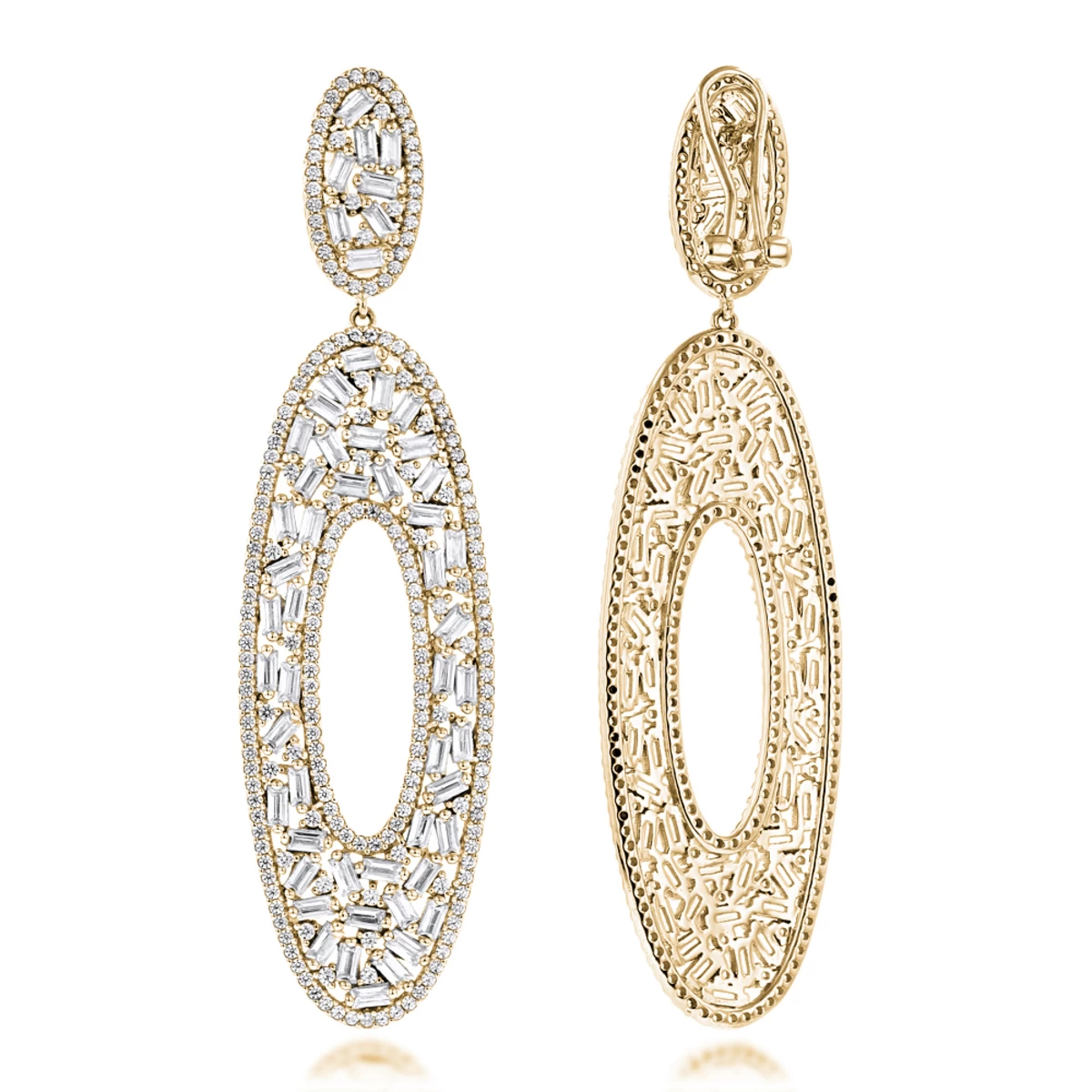 Treat yourself to these amazing 14K Gold Oval Designer Diamond Drop Earrings for Women by Luxurman that are featuring a fashionable design and showcase 9 carats of dazzling diamonds masterfully set in luxurious 14K gold frame. These fabulous unique ladies diamond earrings are available in 14K white, yellow and rose gold and have an incredible, unmatched shine. These irresistible ladies diamond earrings make an unforgettable gift for any occasion and include a pretty packaging! Dont miss out on this one of a kind piece of jewelry, it is an opportunity of a lifetime!