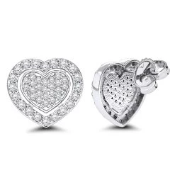 These sophisticated Platinum Diamond Heart Earrings Studs by Luxurman showcase 1/2 of dazzling G/VS quality round diamonds, each beautifully pave set in highly polished platinum. Featuring a romantic heart-shaped design these flirty ladies diamond stud earrings make a perfect present for any occasion.