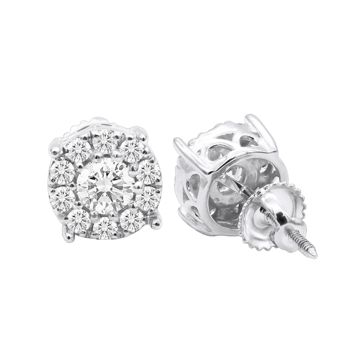 This Diamond Cluster Earring in 14K gold showcases 0.69 carats of genuine diamonds. Featuring a fabulous cluster design and a highly polished gold finish, this diamond stud earring is available in 14K white, yellow and rose gold. Perfect gift for any occasion!