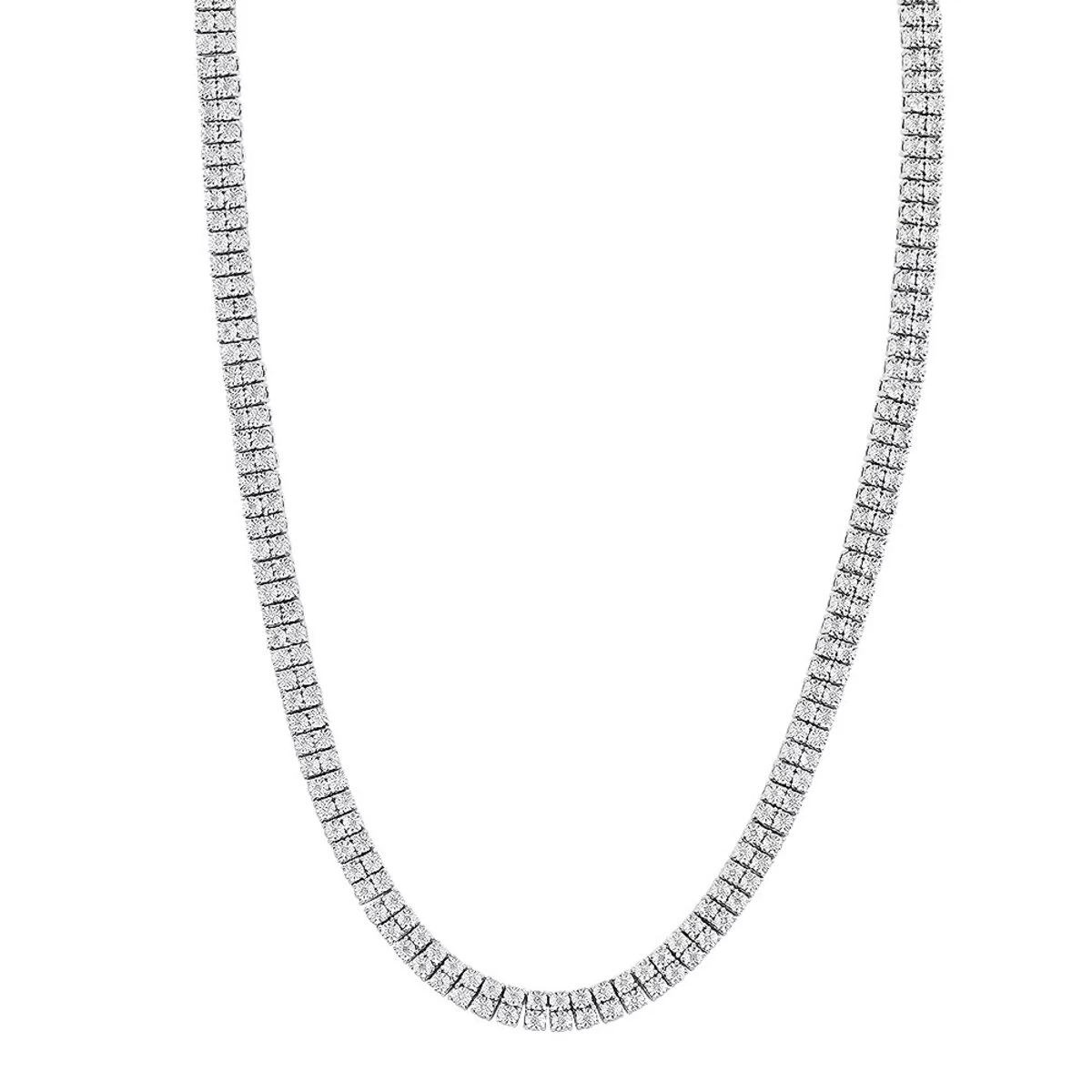 Men’s Diamond Tennis Necklace In Real Sterling Silver 2 Rows Genuine Diamonds