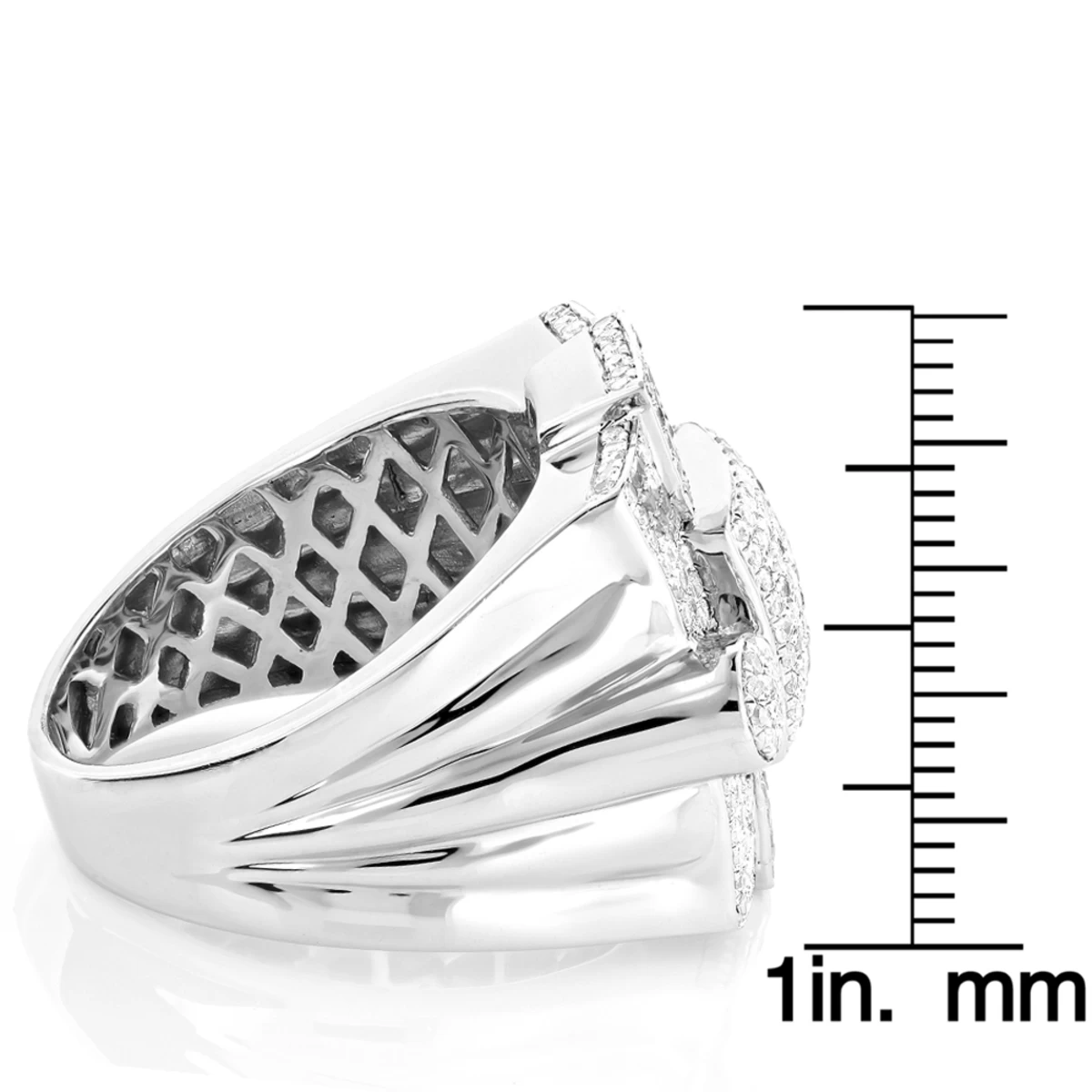 This Men’s Sterling Silver Diamond Ring showcases 1.70 carats of genuine diamonds, a unique design and a luxurious rhodium plating for extra shine. This men’s diamond ring in sterling silver makes a great gift for any occasion.