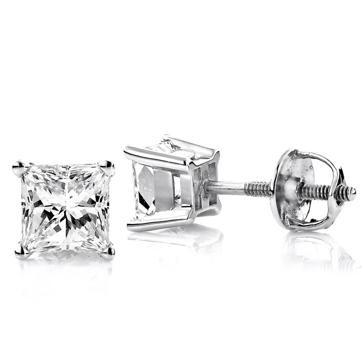 One Carat Platinum Solitaire Princess Cut Diamond Stud Earrings