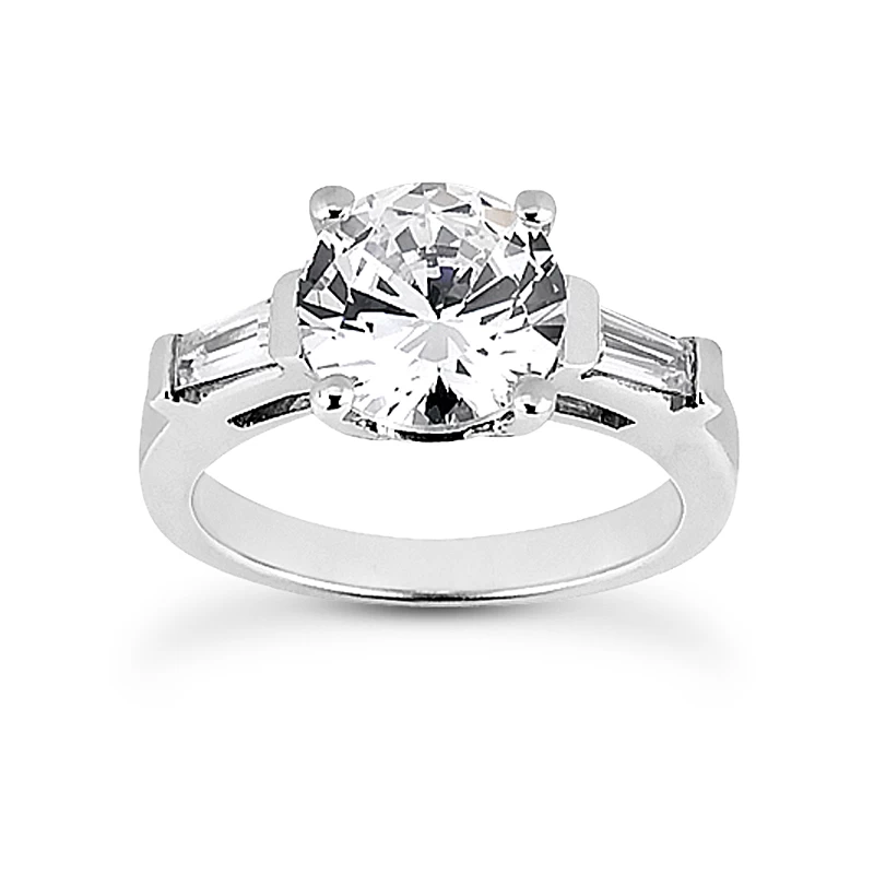 This Platinum Round Diamond Engagement Ring Set consists of a diamond engagement ring and matching band. The engagement ring showcases a 1 carat round diamond in the center and 0.20 carats of baguette cut diamonds on the sides for a total of 1.20 carats of dazzling diamonds. The band showcases 0.20 carats of dazzling baguette cut diamonds. This set is available in Platinum, 18k or 14k yellow, rose, white gold, various sizes, and can be customized with any color and quality diamonds. Please contact us if you would like to customize it.
