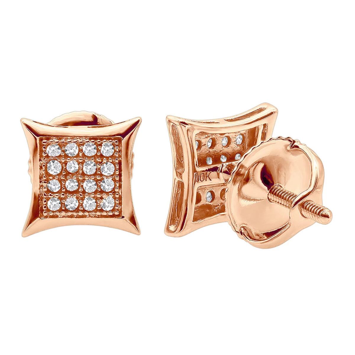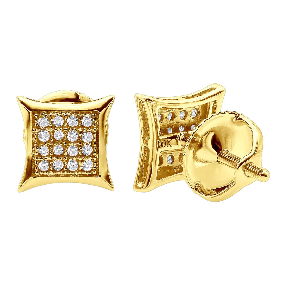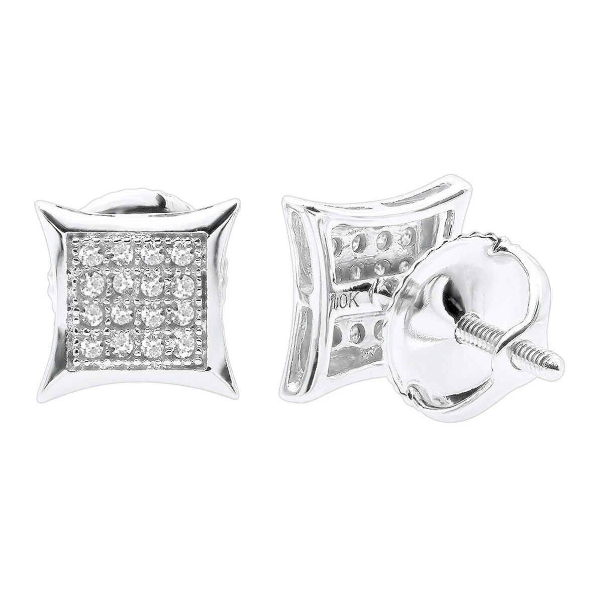 Real Diamond Earrings! These 10K Gold Round Diamond Sutds showcase 0.1 carats of pave-set round diamonds. Featuring a kite stud design and a highly polished gold finish, these versatile diamond stud earrings are available in 10K white, yellow and rose gold.