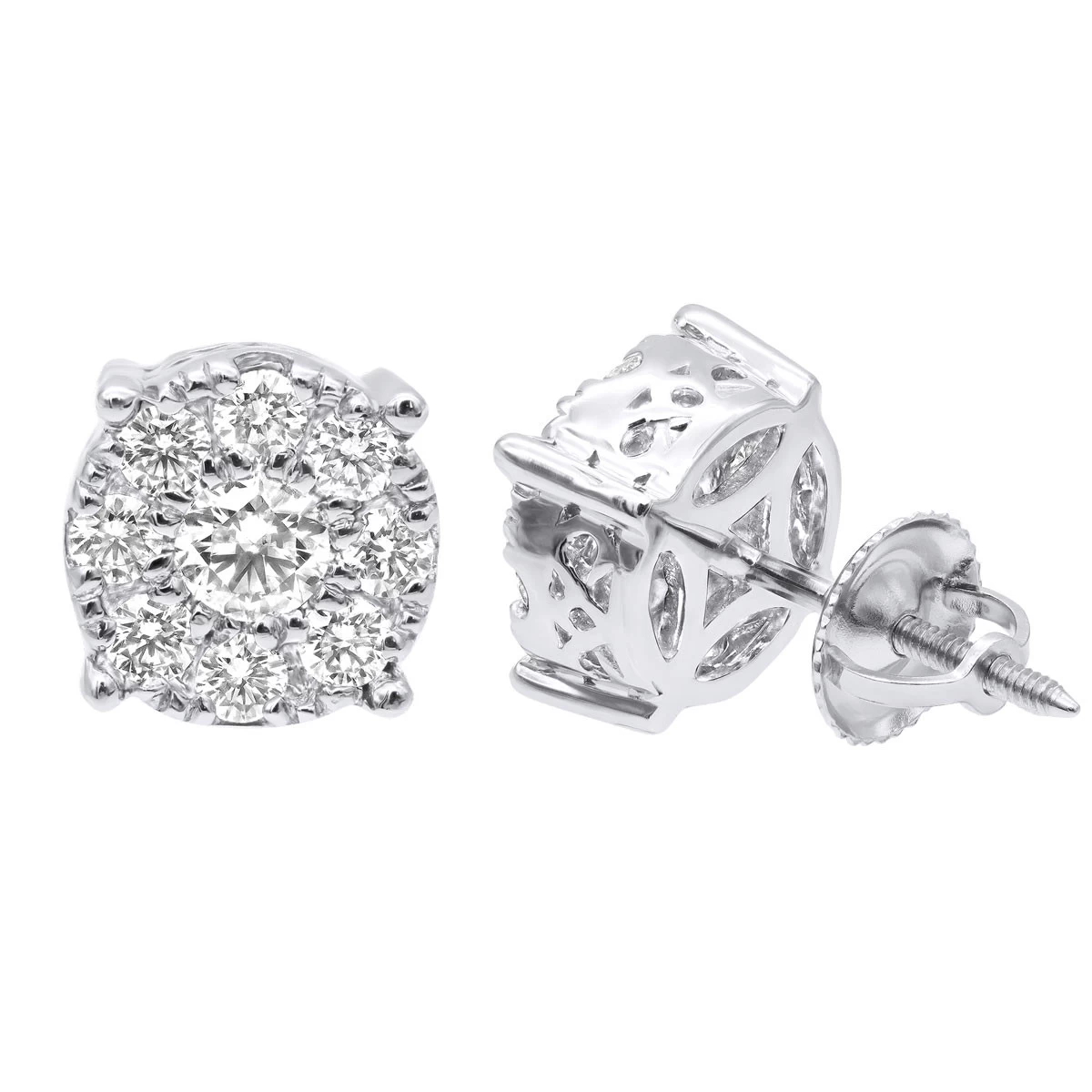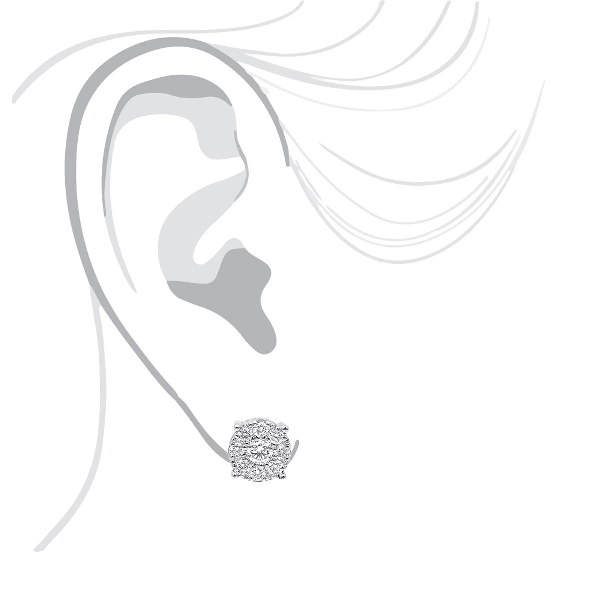 These breathtaking Round Diamond Cluster Stud Earrings in 14K gold showcase 1.61 carats of genuine diamonds. Featuring a timeless cluster design and an impeccable craftsmanship, these lovely diamond stud earrings are available in 14K white, yellow and rose gold.
