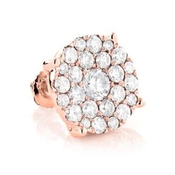 Single Oversized Cluster Men’s 18K Rose Gold Round Diamond Stud Earring 2ct
