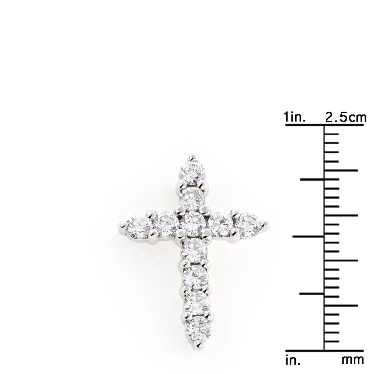 Small 14K White Gold Round Diamond Cross Pendant For Women 1 Carat