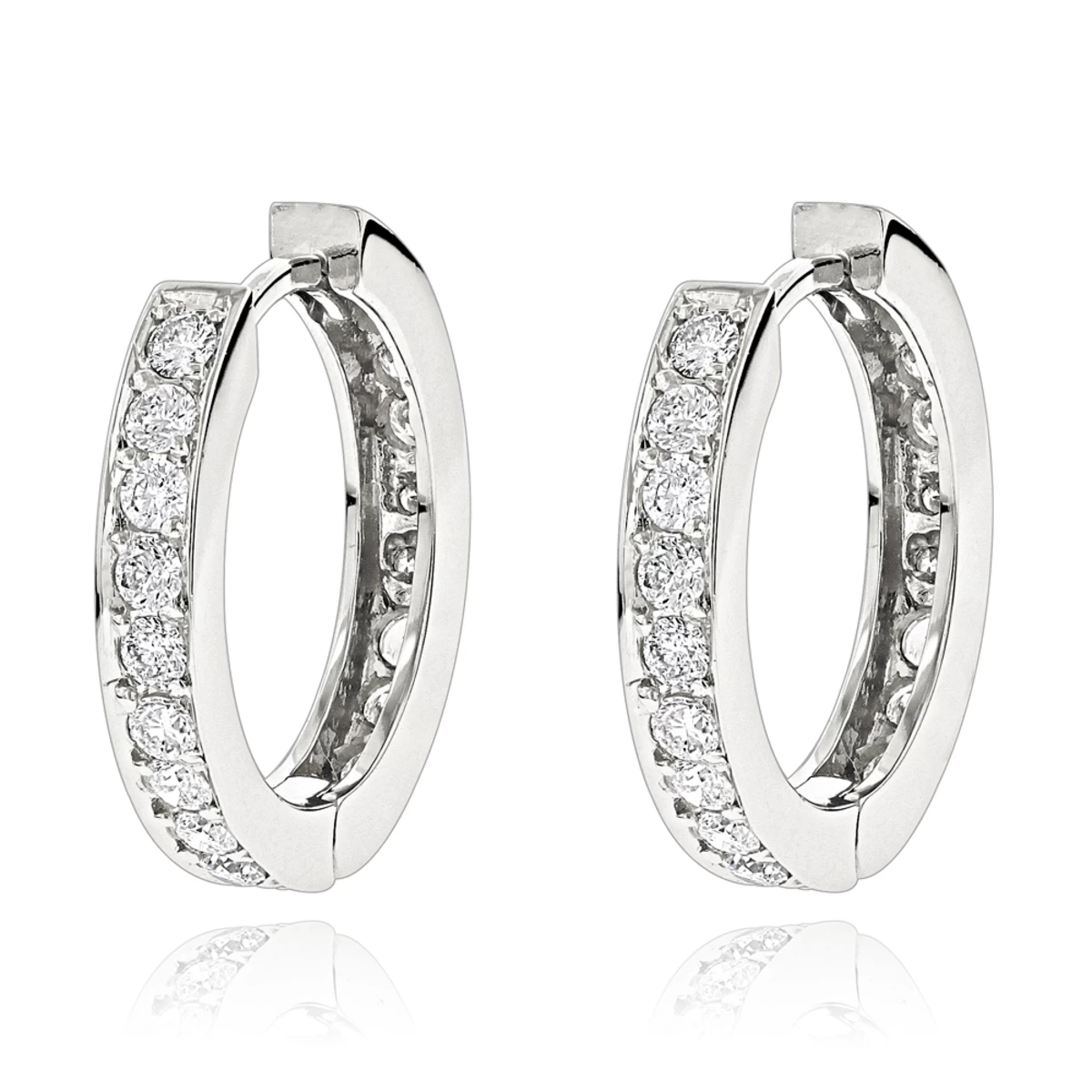 From our Diamond Earrings and Small Hoop Earrings collections: These 14K Gold Inside Out Diamond Huggie Earrings by Luxurman showcase 1.2 carats of dazzling high quality round diamonds masterfully set in 14K gold base. Usually hoop earrings only feature diamonds on one side of earrings but these classy inside out diamond hoops feature diamonds on both sides of each earring and will definitely make a great present and are available in 14K yellow gold, white gold and rose gold.