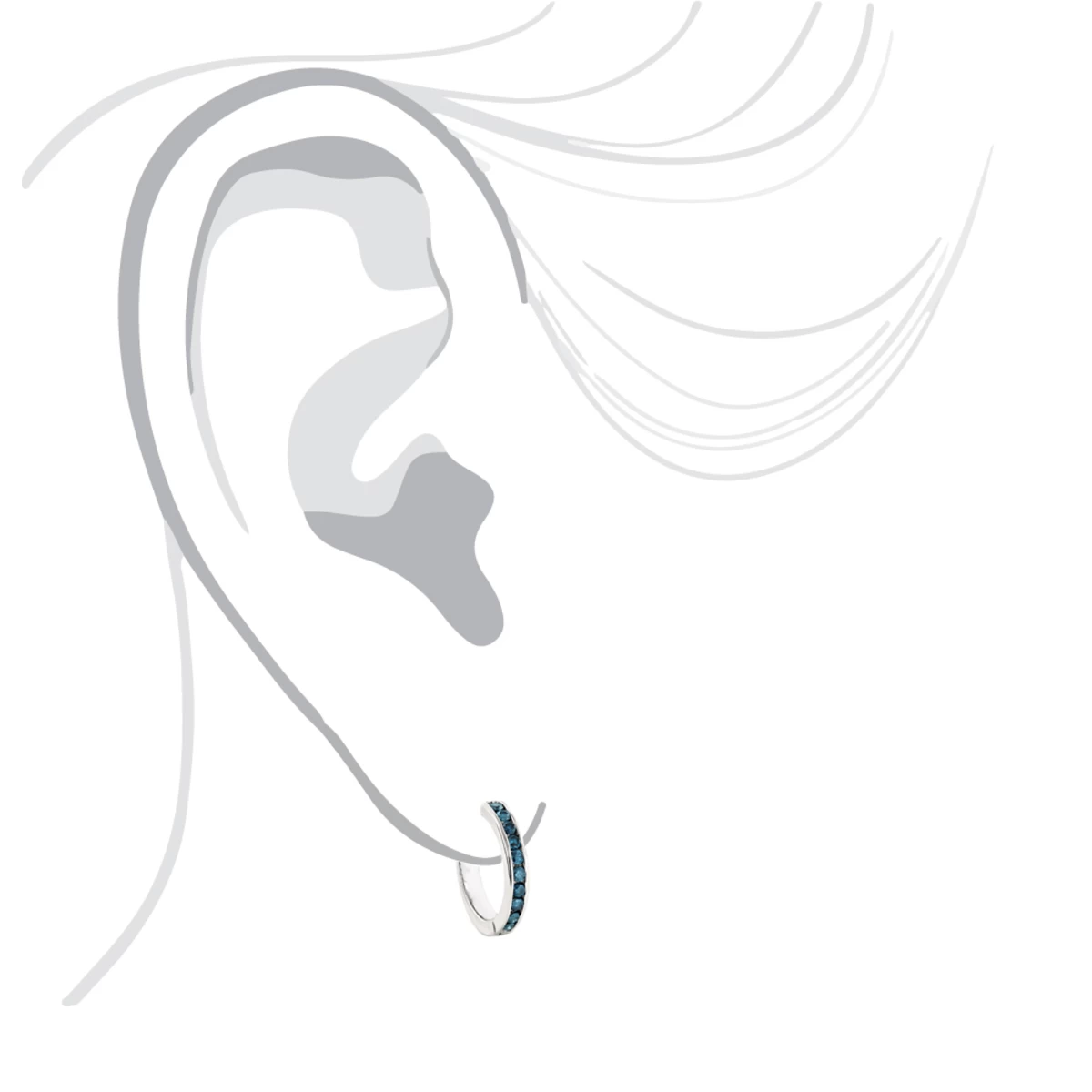 Small Hoop Blue Diamond Earrings 0.55ct 14K White Gold Huggies