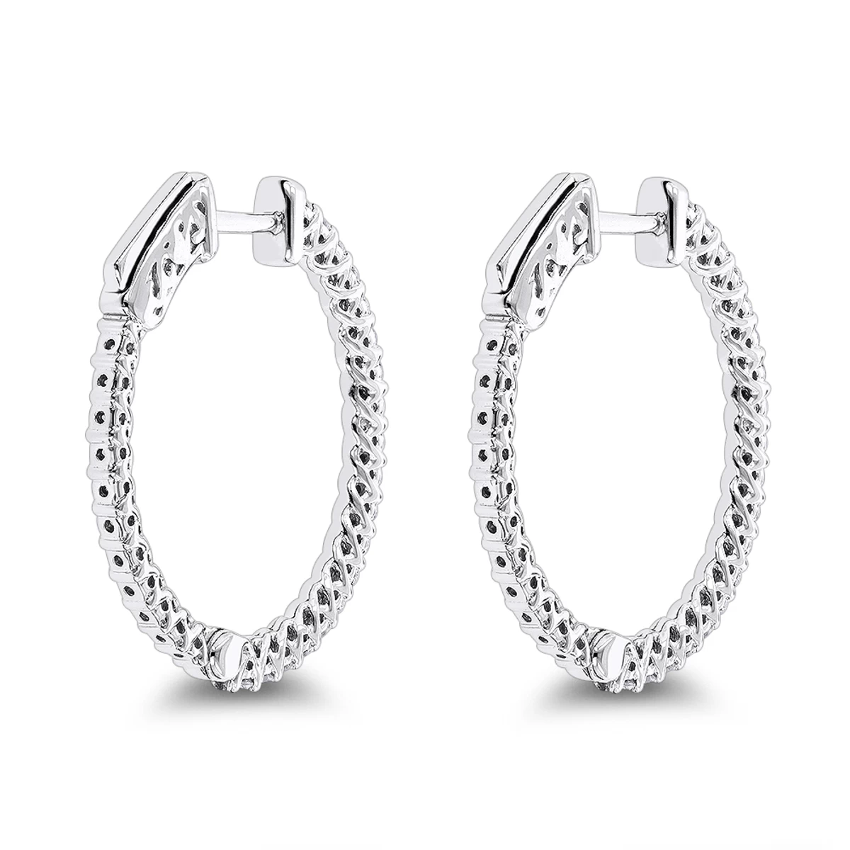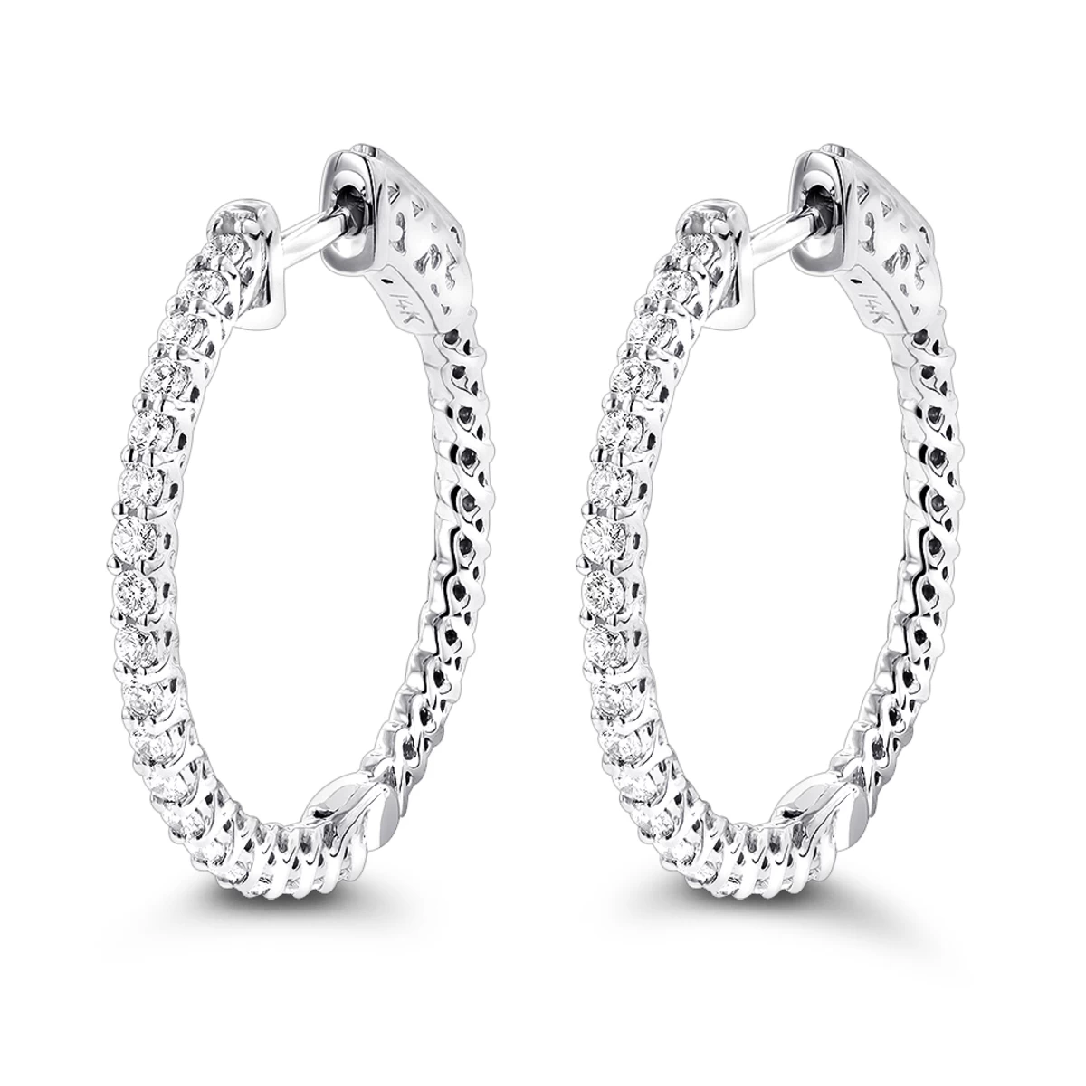 Small Hoops 14K White Gold Diamond Hoop Earrings Inside Out 0.74ct