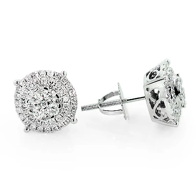 Sparkling Round Diamond Cluster Earrings Studs For Men & Women 14K White Gold