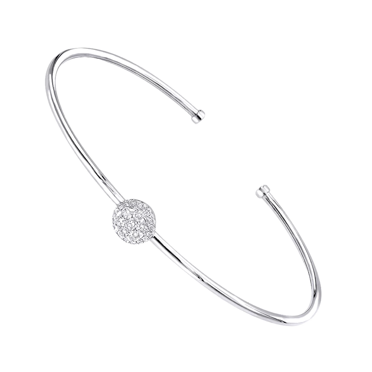 Stackable 14K White Gold Pave Diamond Bangle Bracelet For Women 0.42ct Luxurman