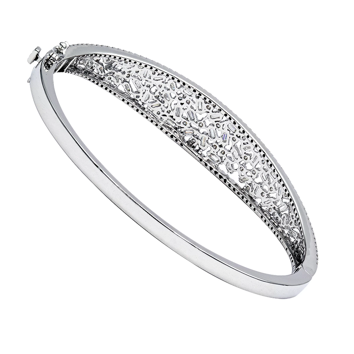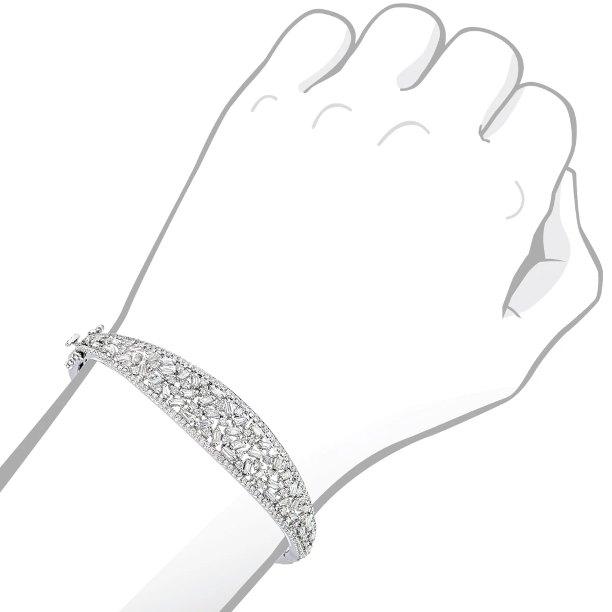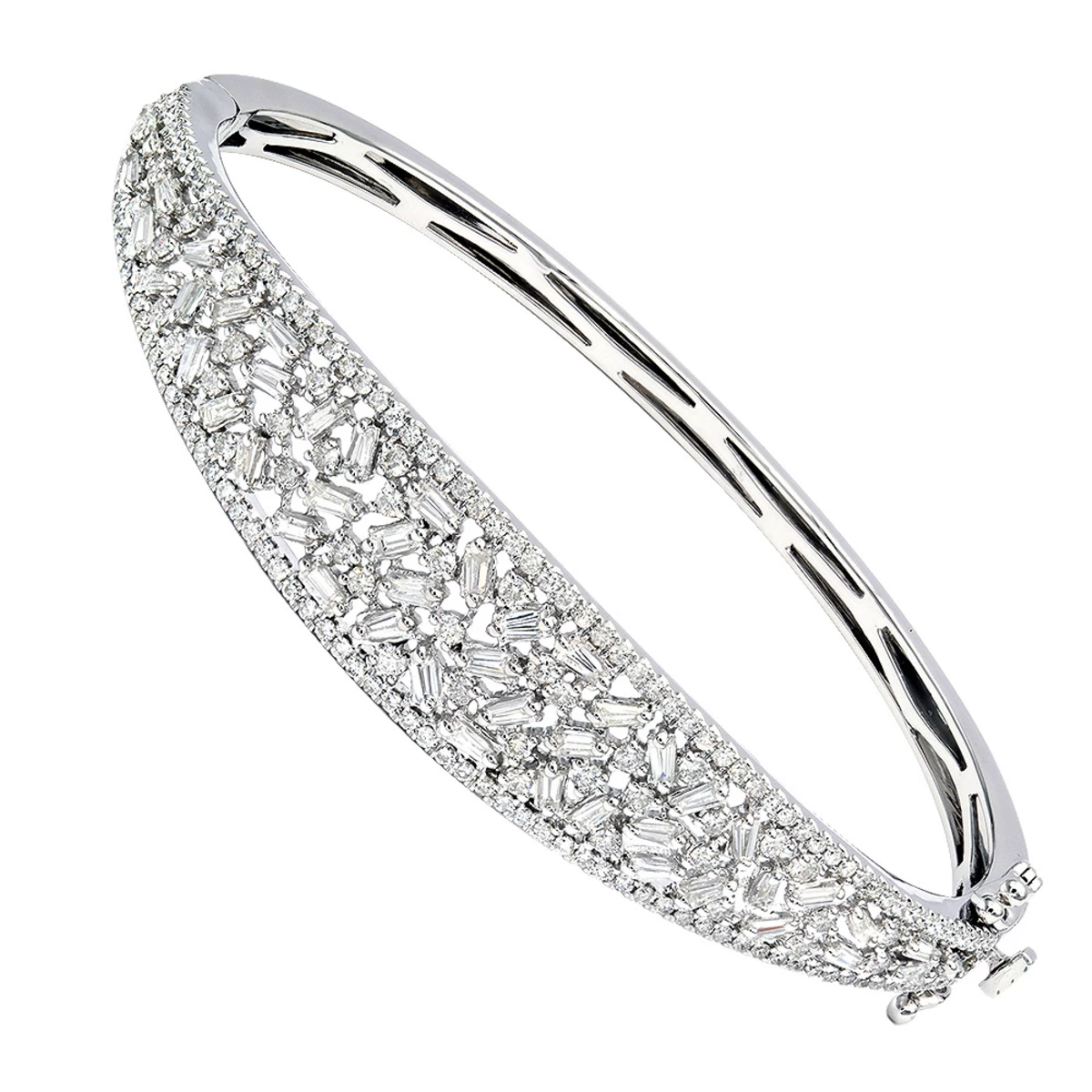 Unique 14K White Gold Baguette & Round Diamond Bangle Bracelet For Women 3 Carat