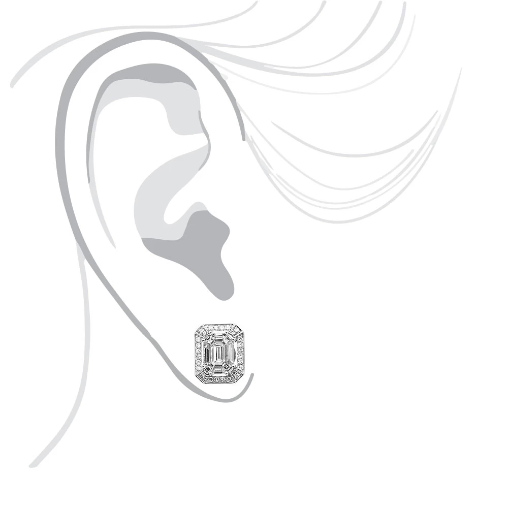 Unique 18K White Gold Emerald Cut Diamond Stud Earrings Halo Design 2.5ct