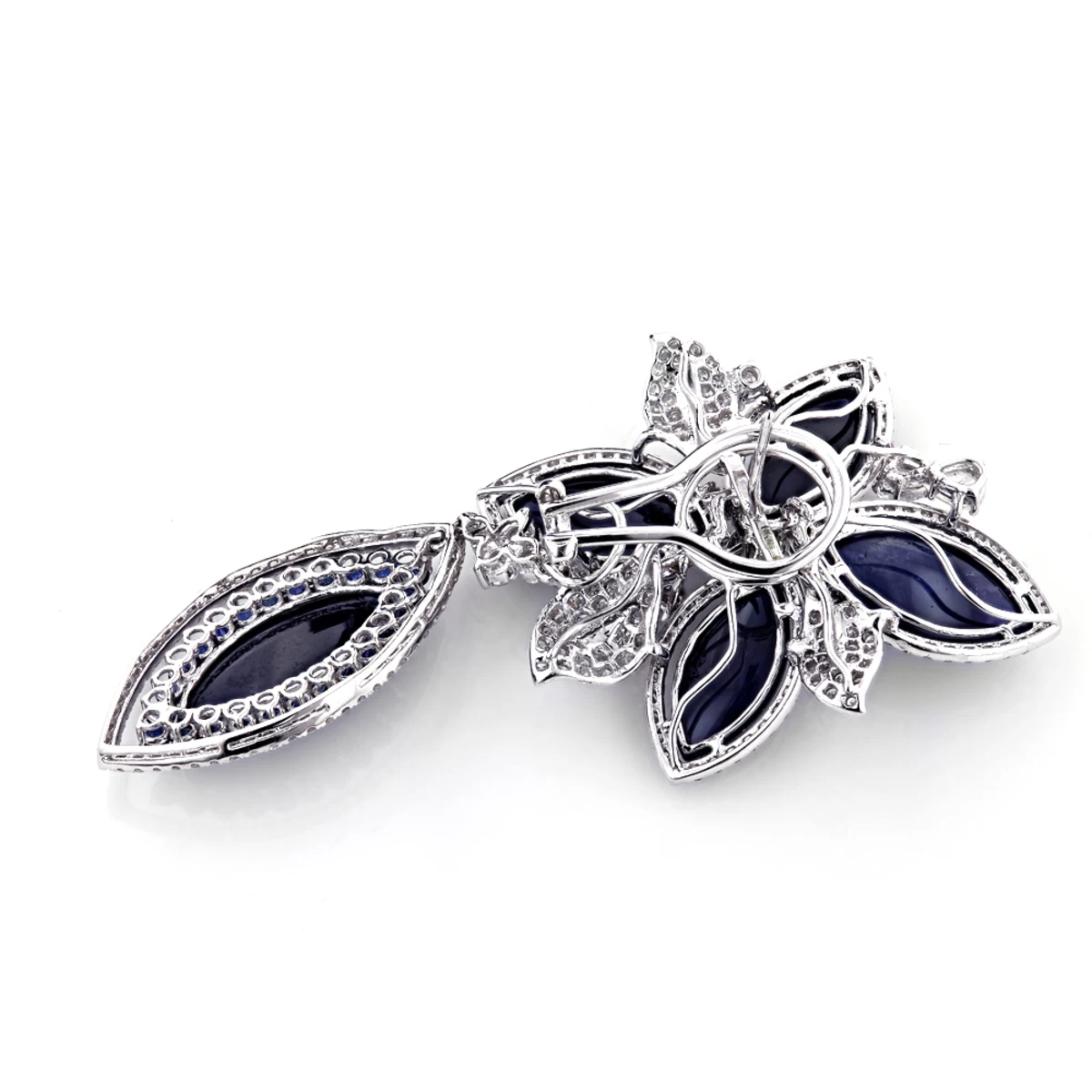 Unique 18K White Gold Ladies Designer Diamond Flower Earrings Blue Sapphires