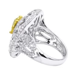 Unique 18K White Gold White & Pear Yellow Diamond Cocktail Ring For Women
