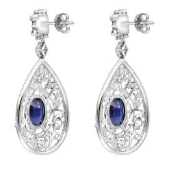 Unique Designer Blue Sapphire And Diamond Drop Earrings For Women 18K White Gold