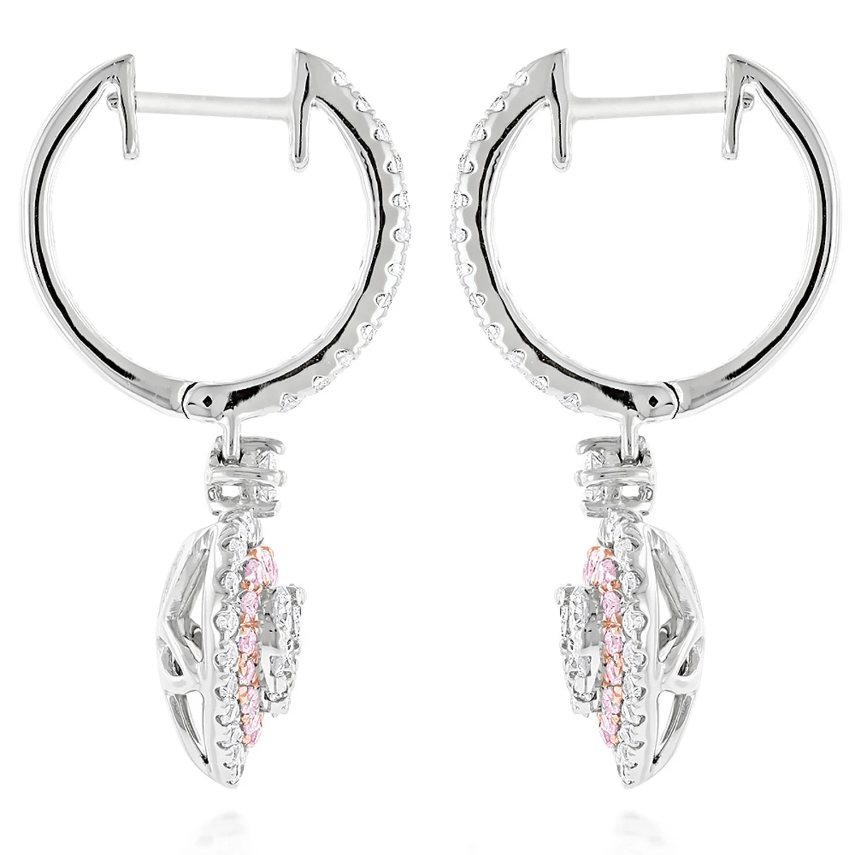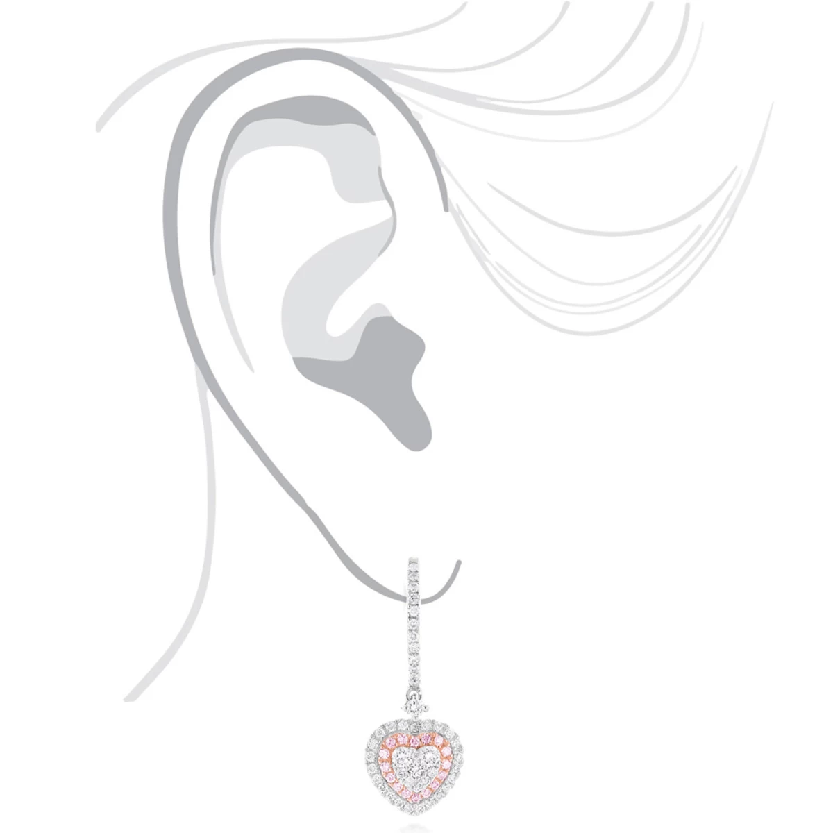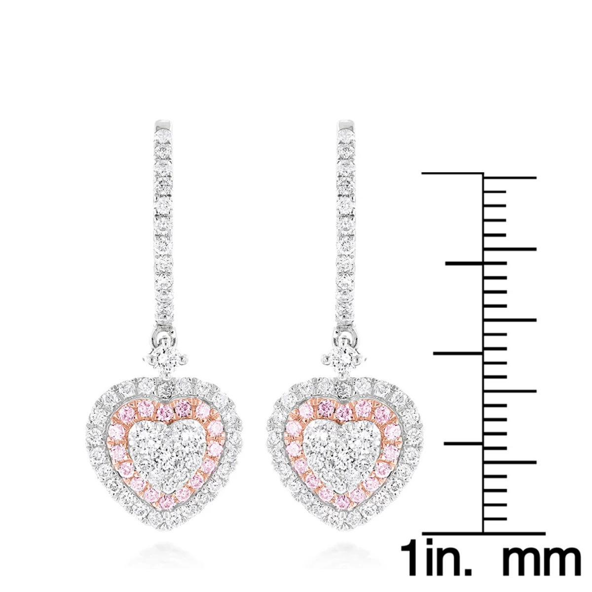 Unique Luxurman Drop Earrings White & Pink Diamond Heart Earrings 14K White Gold
