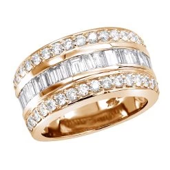 Unique Diamond Wedding Bands Collection: This elegant and very Unique 14K Gold Round and Baguette Diamond Ring by LUXURMAN weighs approximately 12 grams and showcases 2.86 carats of VS quality sparkling channel set baguette diamonds and prong set round diamonds set in two rows on both sides of the baguette diamonds. Featuring a simple yet luxurious design and a highly polished gold finish, this fabulous diamond ring makes a very unique wedding band and is available in 14K white, yellow and rose gold as well as 18k gold and Platinum as a custom order.