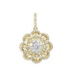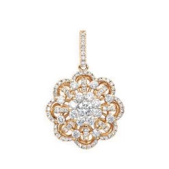 This Vintage looking 18K Gold Cluster Diamond Flower Pendant for Women by LUXURMAN showcases vintage yet classy round flower design accentuated with 1 1/4 carats of sparkling diamonds petals and the cluster setting center. The ladies diamond flower pendant represents elegance and chic. It can be worn to any special event, as well as make an everyday accessory. This pendant is 11/16in (18mm) wide and just over an inch long with the bail: 1 1/16in (26mm), available in 18K Yellow, Rose and White gold. This beautiful piece of art will make the best gift ever for that special lady! You also can personalize this piece or check we’ve already made and create your own design.