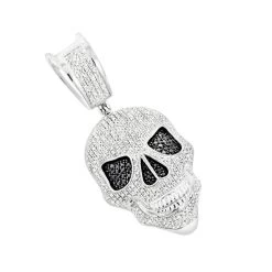 This White and Black Diamond Iced Out Skull Pendant featuring 0.83 carats of white and black diamonds masterfully pave set in 10K solid gold. This diamond skull pendant is available in 10K white gold, yellow gold and rose gold. Please note: chain is for illustration purposes only and must be purchased separately. You also can personalize this piece or check we’ve already made and create your own design.