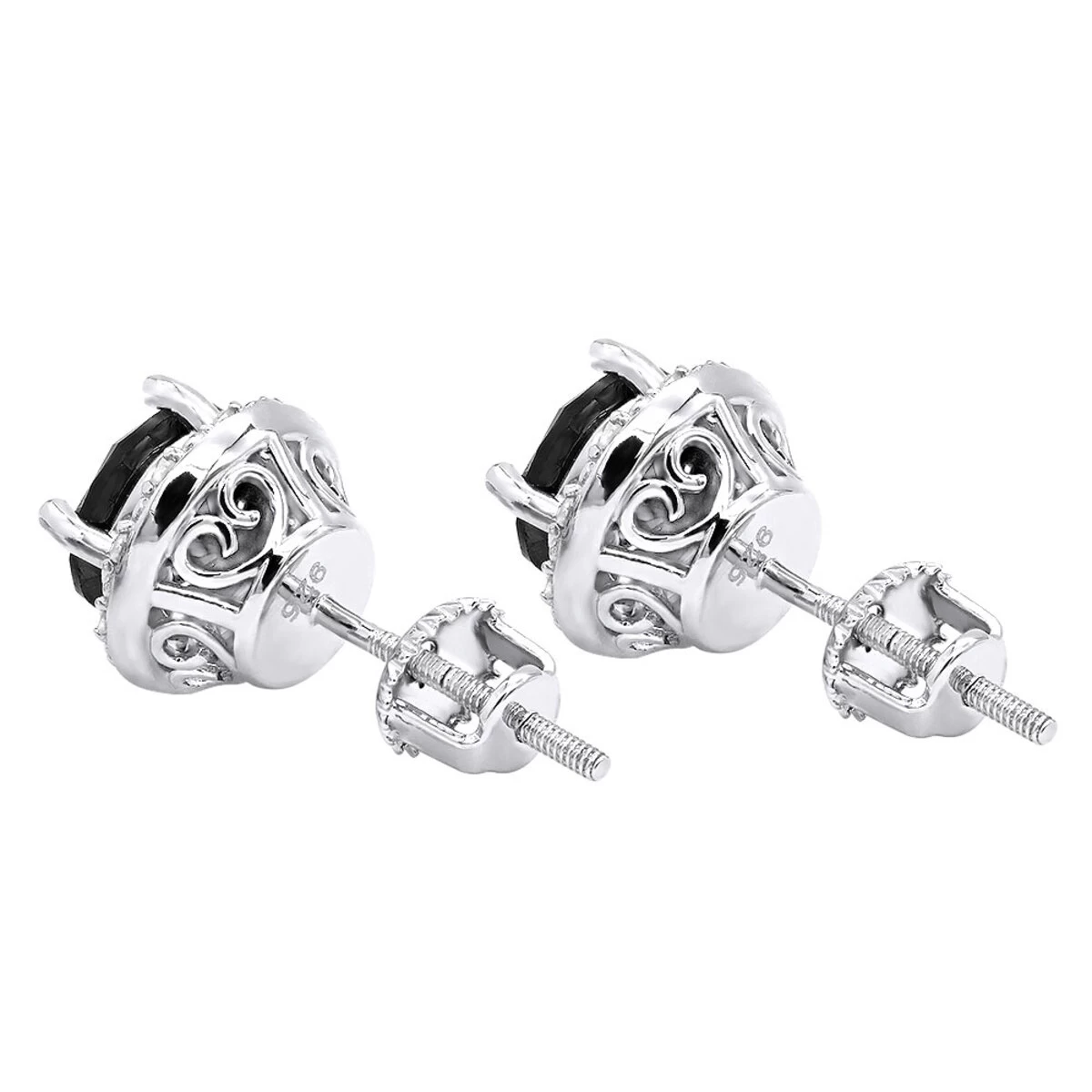 White And Black Diamond Stud Earrings 3.2ct Sterling Silver