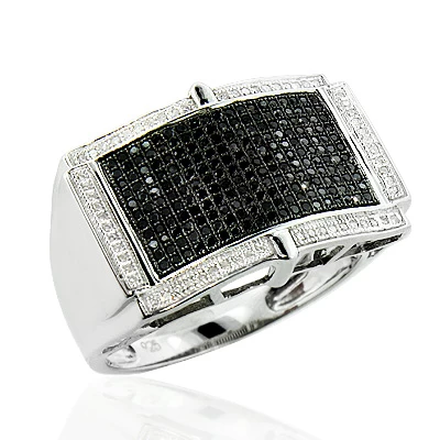 This Fabulous White and Black Diamond Ring for Men in Sterling Silver showcases 0.70 carats of round diamonds and a luxurious rhodium plating for extra shine. This men’s silver diamond ring is an affordable alternative to expensive gold jewelry.